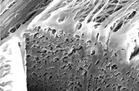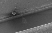Scanning Electron Microscope images of Carbon NanoTube webs were deposited on a thermoplastic polymer and hot-embossed to form microfluidic channels, in order to establish whether the CNT webs layer would conform to the embossed structure without losing the film continuity and the alignment.