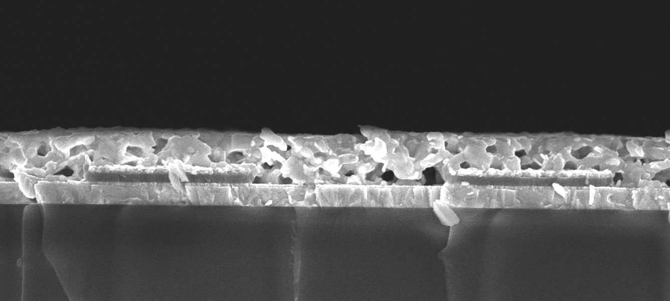 However, the latest research from a team of CSIRO and Monash University researchers, working out of ANFF-Vic’s Melbourne Centre for nanofabrication, has combined the benefits of both device types using a series of photolithography and vacuum deposition processes. The technique enabled an alternative design in which the interlocking array of anodes and cathodes were no longer on the same plane, but still remained on only one side of the perovskite absorber layer.