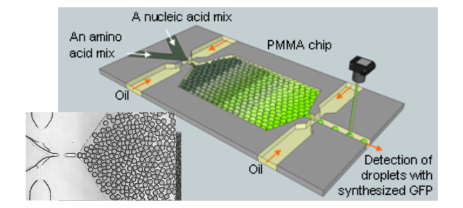 A picture of a microchip developed in CSIRO Microfluidics Lab for synthesis of a green fluorescence protein molecule
