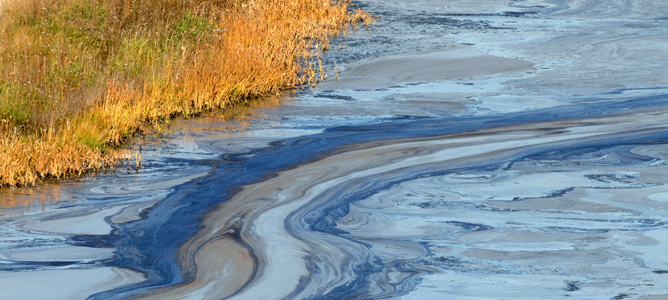 Oil spills like these could be cleaned up with boron nitride nanosheets.