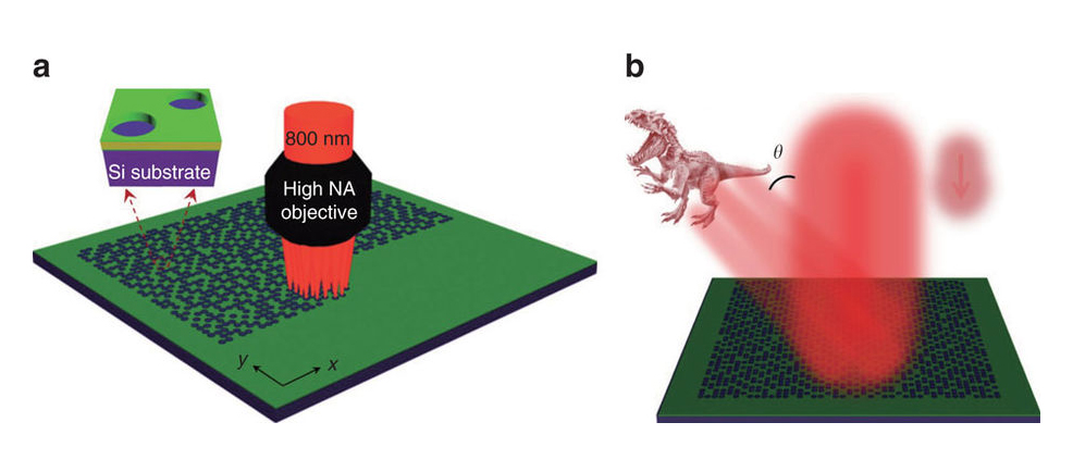 The paper’s lead author, Dr Zengji Yue, explained that to reduce the depth the team began working with Antimony Telluride (Sb2Te3) that had been laser etched to feature the desired interference pattern.