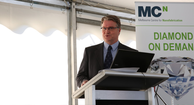 Diamond systems launch: Prof. Steven Prawer addressing the audience at MCN's Diamond on Demand Seminar