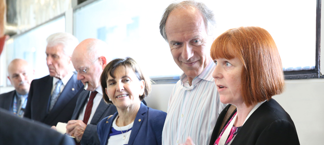 Professor Susan Pond AM inspecting a sample during the NCRIS review