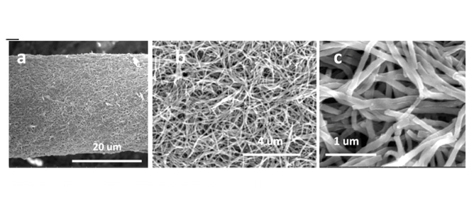 Congratulations to Daohong Zhang et al who recently published the paper entitled “Core-Spun Carbon Nanotube Yarn Supercapacitors for Wearable Electronic Textiles,” in ACS Nano. The paper presents a core/sheath structured carbon nanotube yarn architecture and a method for one-step continuous spinning of the yarn for the creation of long linear supercapacitors. In the yarn, the carbon nanotubes form a thin surface layer around a highly conductive metal filament core, which serves as current collector so that charges produced on the active materials along the length of the supercapacitor are transported efficiently, resulting in significant improvement in electrochemical performance and scale up of the supercapacitor length. The long, strong, and flexible threadlike supercapacitor is suitable for production of large-size fabrics for wearable electronic applications. (see figure 4)