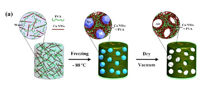 Congratulations to MCN Technology Fellow, Assoc Professor Wenlong Cheng who co-authored the paper entitled, “Manufacturable Conducting Rubber Ambers and Stretchable Conductors from Copper Nanowire Aerogel Monoliths,” recently published in ACS Nano. The paper reports on a low-cost, simple and efficient strategy to fabricate ultralightweight aerogel monoliths and conducting rubber ambers from copper nanowires. A trace amount of polyvinyl alcohol substantially improved the mechanical robustness and elasticity of the copper nanowire aerogel while maintaining a high electrical conductivity. Remarkably, the copper nanowire aerogels could be further embedded into PDMS resin, forming conducting rubber ambers. The ambers could be further manufactured simply by cutting into any arbitrary 1D, 2D, and 3D shapes, which were all intrinsically conductive without the need of external prewiring, a condition required in the previous aerogel-based conductors. (see figure 7)